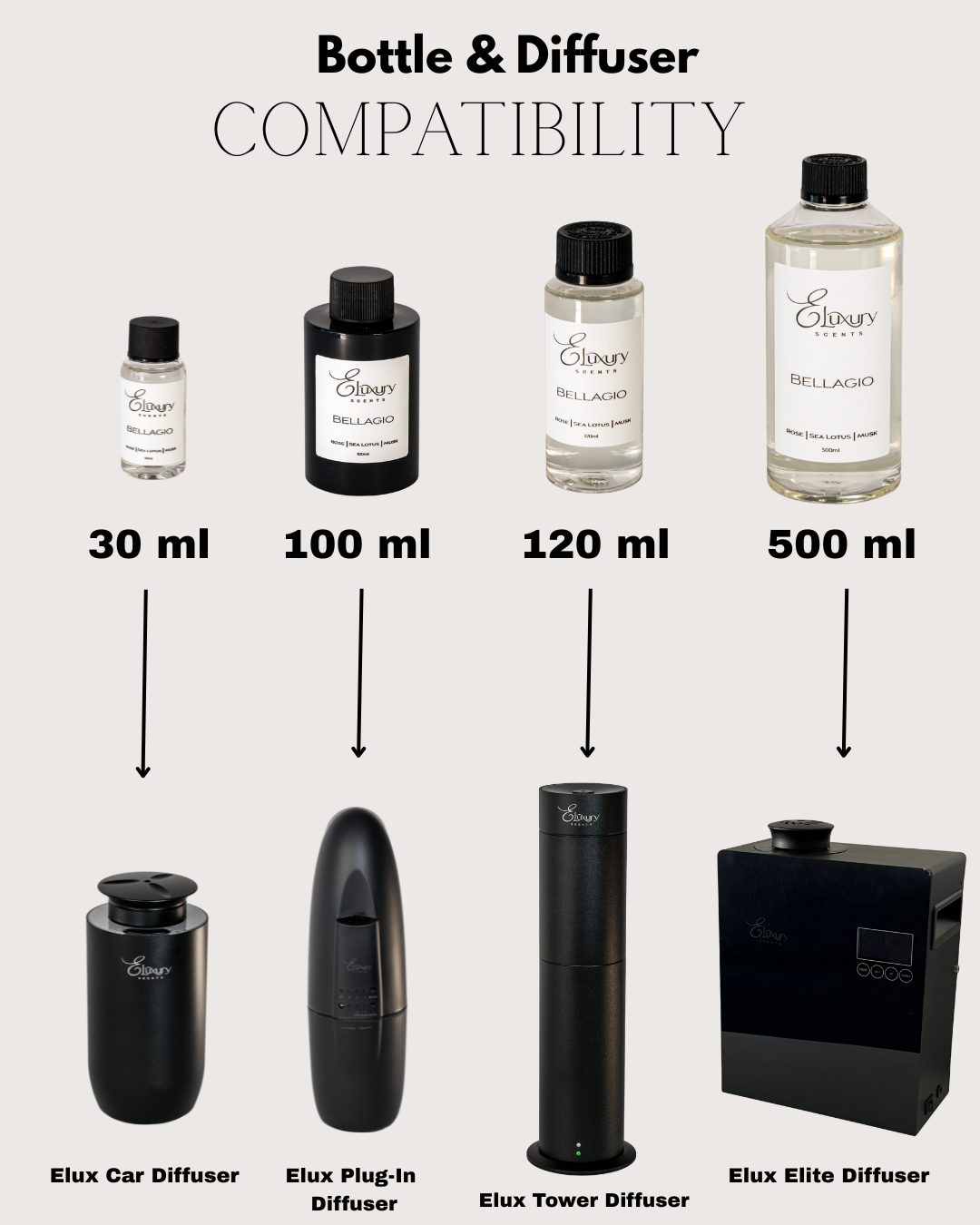 120 ml: Esta botella es la recarga para nuestro Difusor de torre Elux